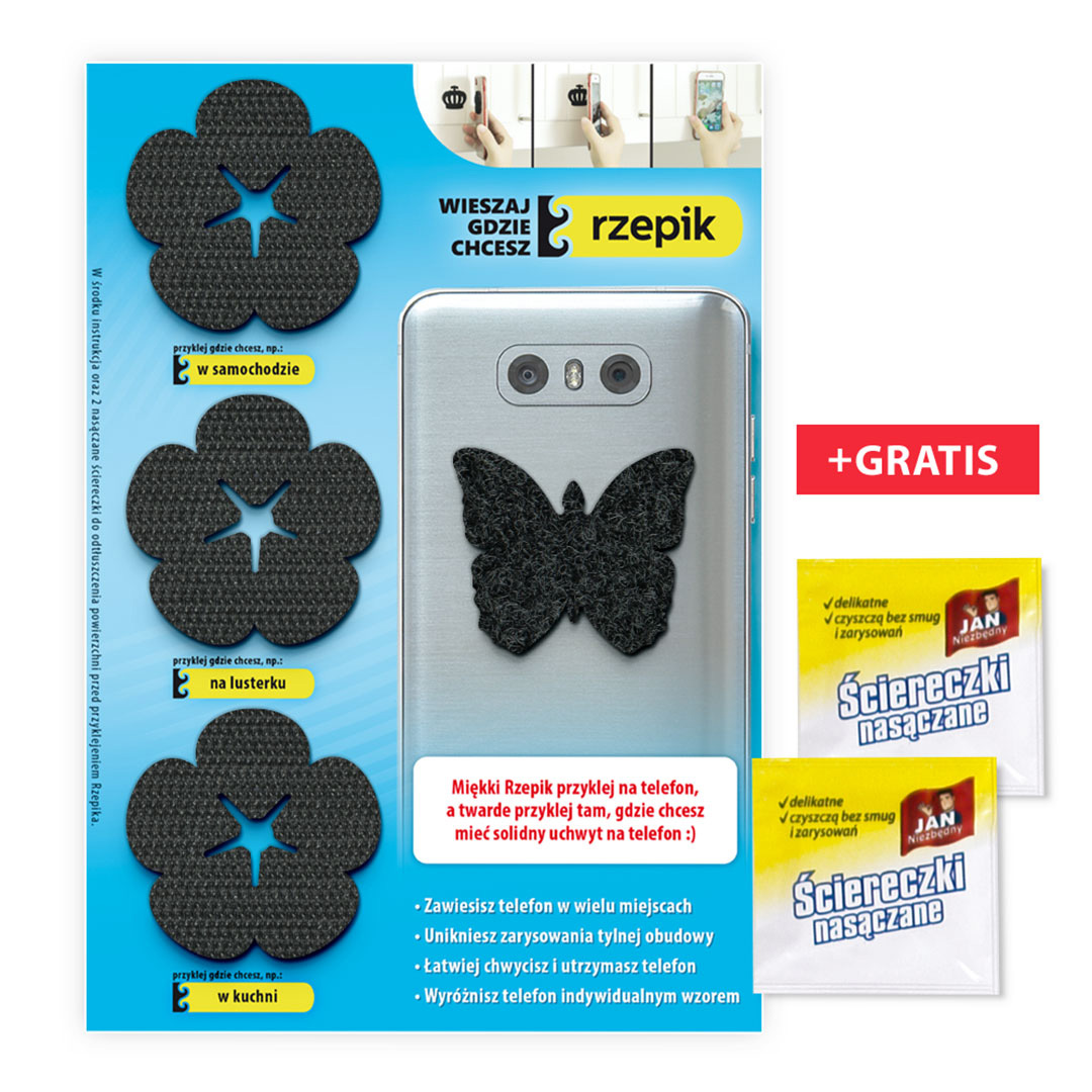 Założenie, jest proste. WYBIERZ PASUJĄCE CI WZORY RZEPIKÓW …i przyklej miękkiego Rzepika na telefon, a twarde Rzepiki w każdym miejscu, gdzie chciałbyś się bezpiecznie czepić z Twoim telefonem. Do wyboru masz ponad 50 wzorów 🙂