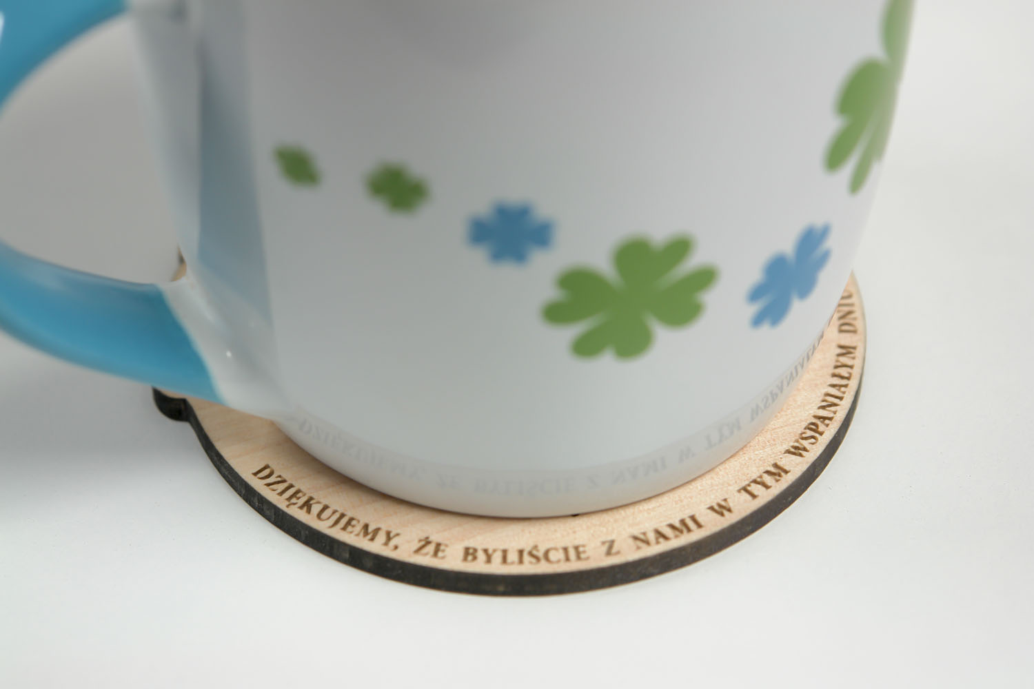 Na specjalne zamówienie przygotowałem projekt podkładki pod kubek, która miała stać się jednocześnie prezentem dla gości weselnych.